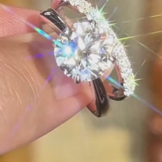 Dupla de Solitário e Aparador em Moissanite, Prata 925, cor D-E, pureza VVS1. Solitário 2ct (8mm) + Aparador 0,03ct (2mm), ambos com Certificado GRA. Compre e ganhe